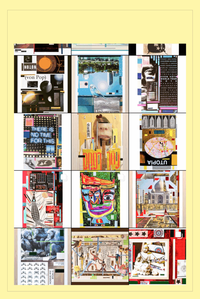 Analogue paper-collage, – papers, stickers and glitter-effect adhesive foil, 39 cm x 70 cm