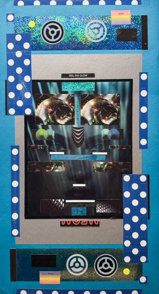 Analogue paper-collage, – papers, stickers and glitter-effect adhesive foil, 39 cm x 70 cm