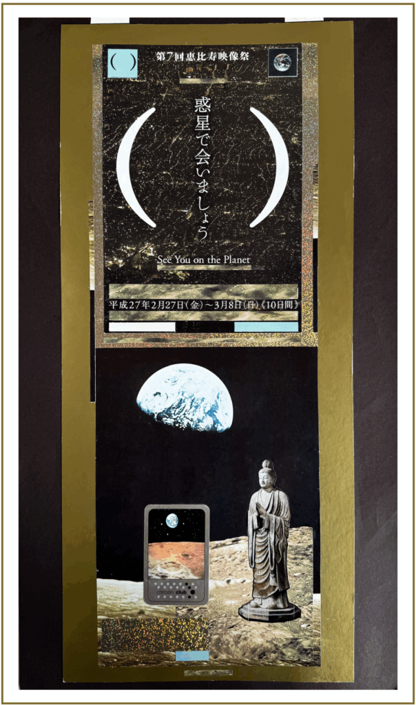Analogue paper-collage – papers, d-c-fix glitter-effect foil and one Cocoon Club-Flyer, 39 cm x 70 cm