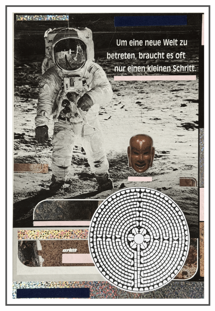 Analogue paper-collage Paper-collage – papers, d-c-fix glitter-and velvet-effect foil; 21 cm x 30,5 cm